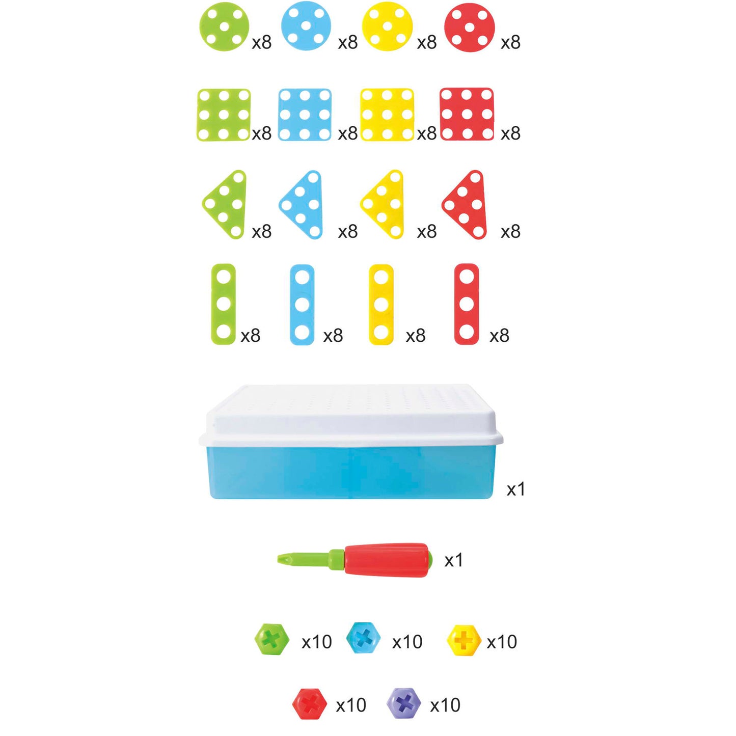 - Includes screws and a kid-friendly screwdriver