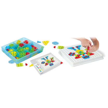Twist, turn, and create! The Miniland Mosaic Art, 180 Pieces set is a treasure chest of creativity waiting for little hands to unlock its potential. This kit empowers children aged 3-7 to build imaginative 2D mosaic designs. Securely housed in a convenient container that doubles as a sturdy mounting bracket, this playful educational toy not only promotes creativity but fine motor skills too. Engage your child in hours of artistic and structural expression with vibrant platelets and versatile strips that come alive with every assembly!