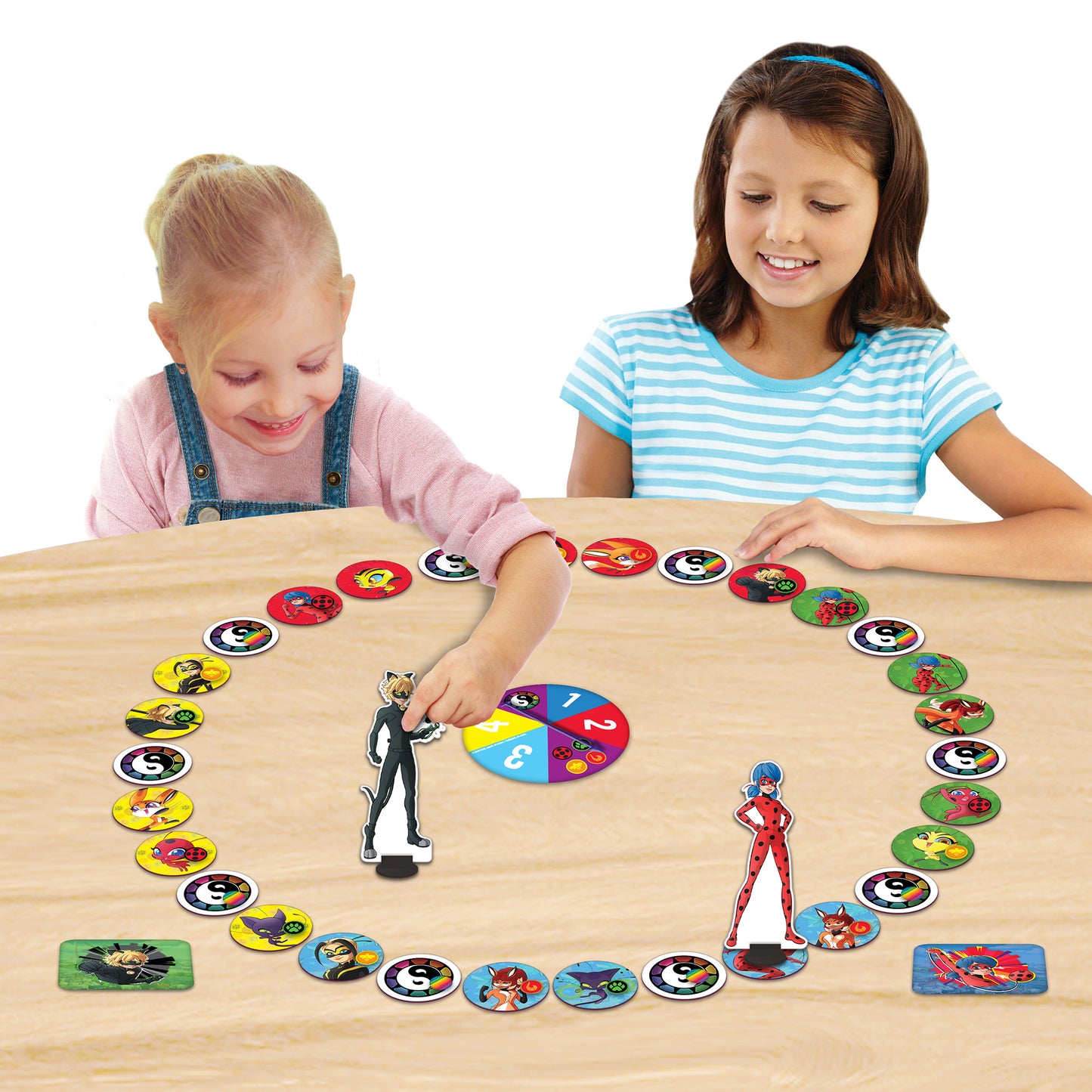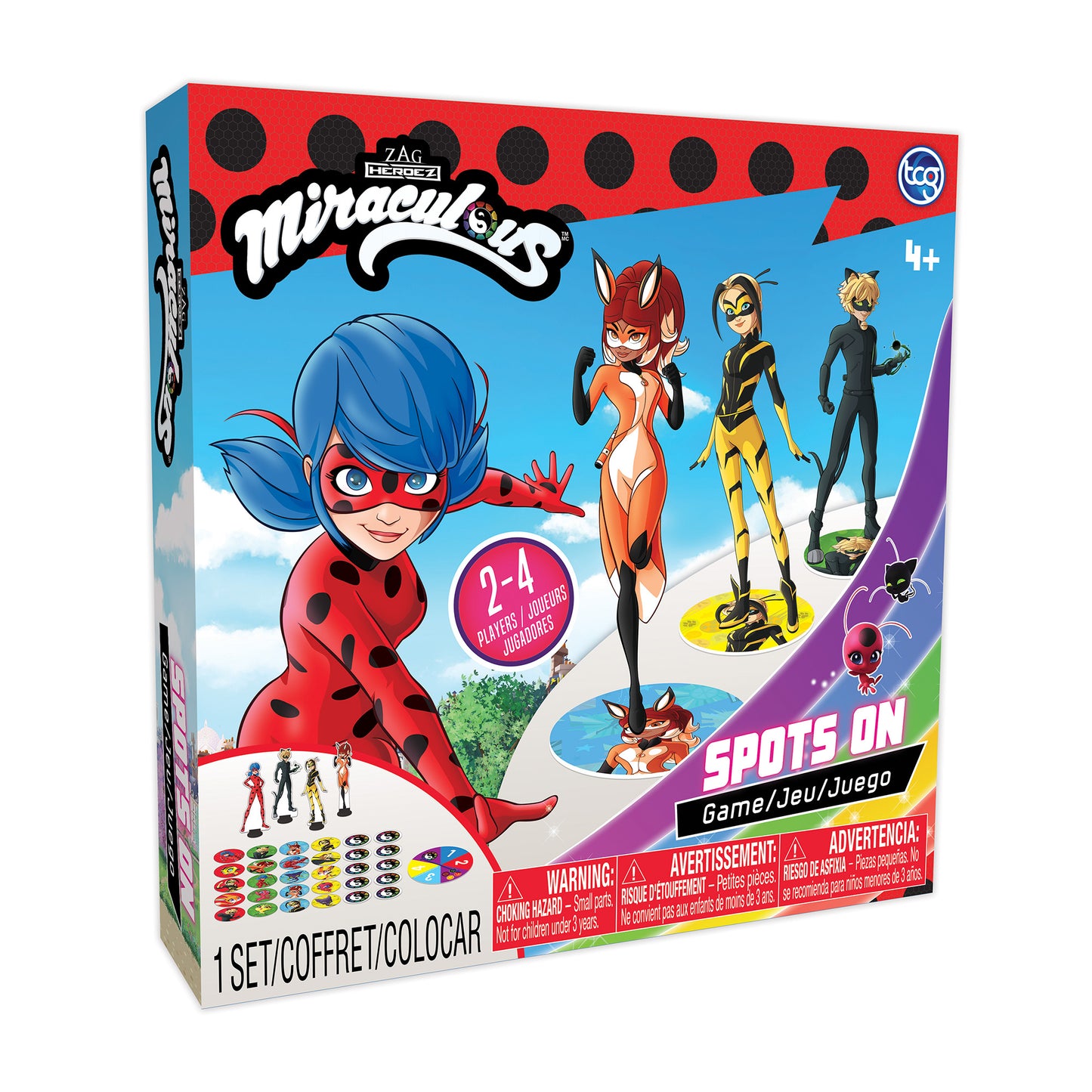 Team up with your favorite superheroes in the Miraculous Spots On Game! This family board game transforms your living room into the vibrant streets of Paris where Ladybug and Cat Noir battle the tricky Hawk Moth. Race to collect colorful mission discs with the help of allies Rena Rouge and Queen Bee. Watch out as the board shifts and turns with every power-up, keeping every game uniquely challenging!