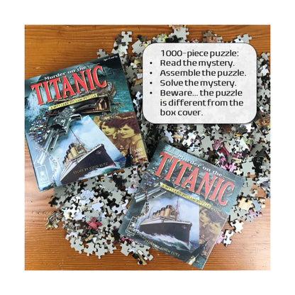 Piece together the suspense with the Murder on the Titanic Classic Mystery Jigsaw Puzzle: 1000 Pcs. This isn't just any puzzle; it's a whirlwind of mystery, romance, and intrigue. The plot revolves around wealthy twin sisters, a night filled with romance and betrayal, and the iconic, ill-fated Titanic. As you connect each of the 1000 pieces, uncover hidden clues that spiral you further into the mystery before the ship meets its tragic end. The assembled puzzle reveals a scene different from the one on the box, adding an extra twist to your detective work!