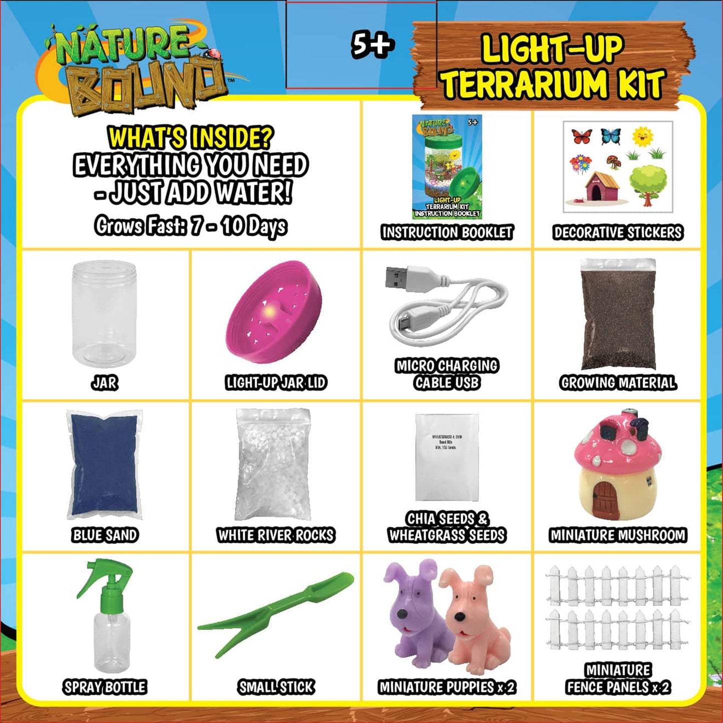 The Nature Bound Light-Up Terrarium Kit features: