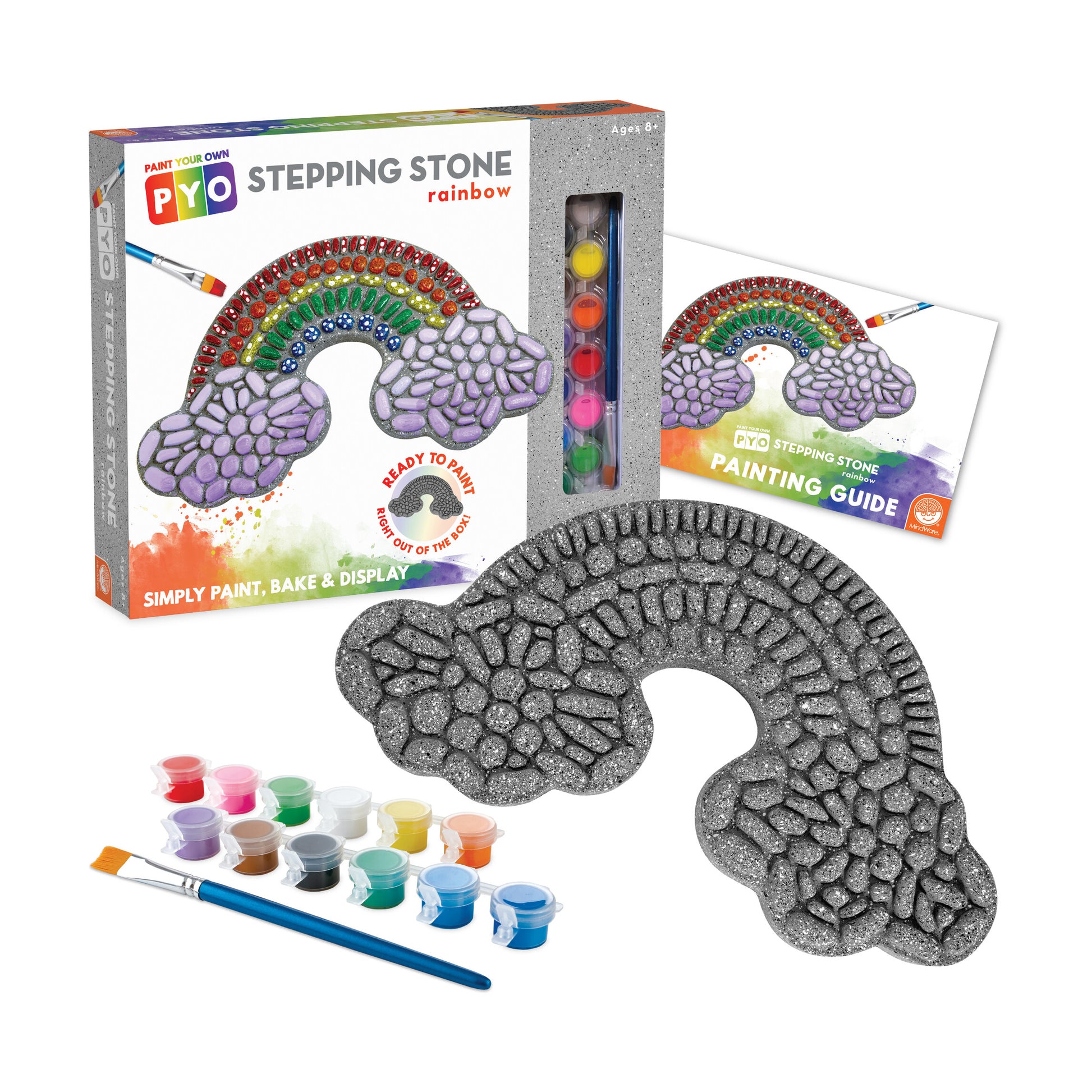 The Creative Escapes Rainbow Stepping Stone Paint Kit features: