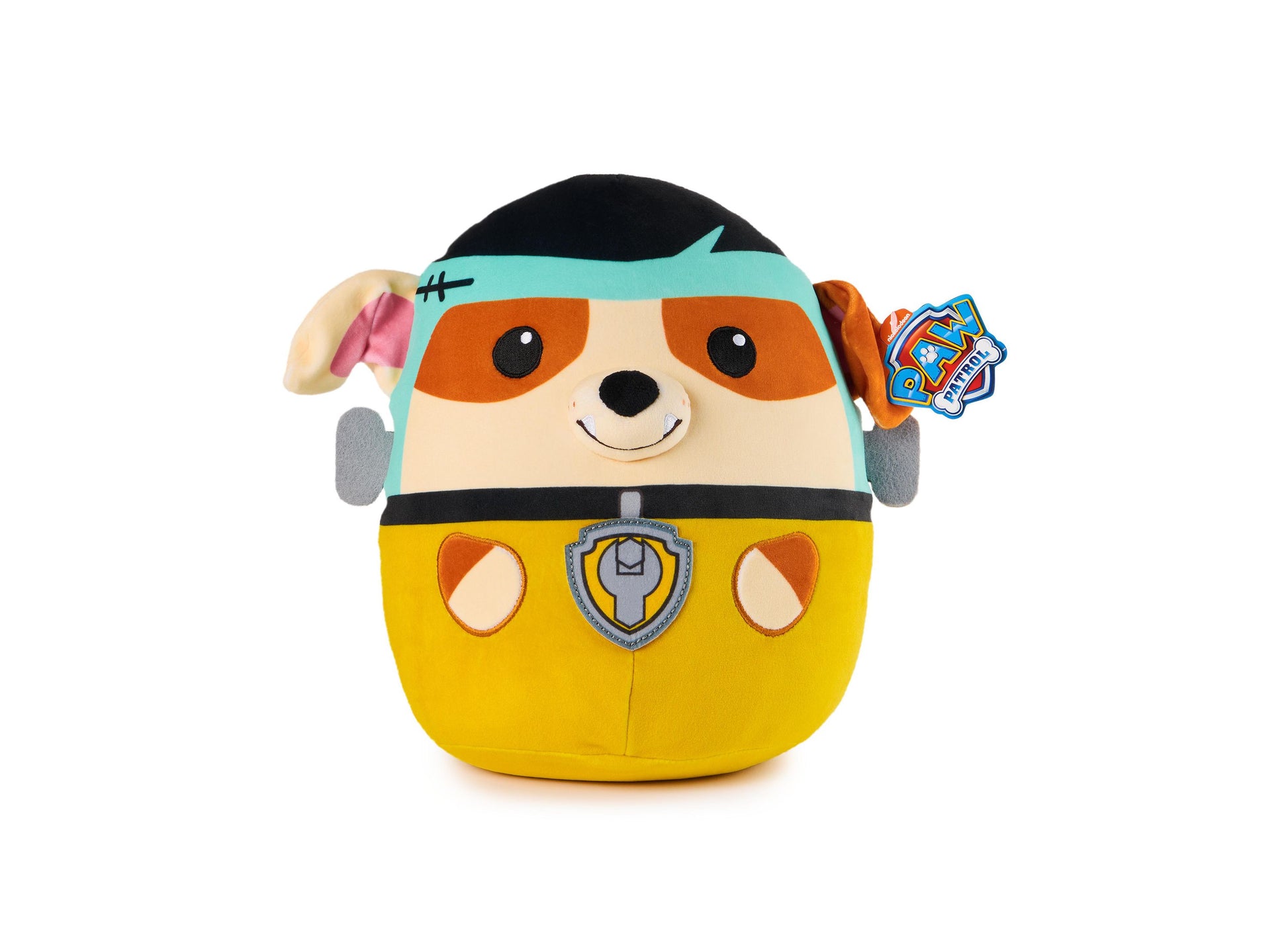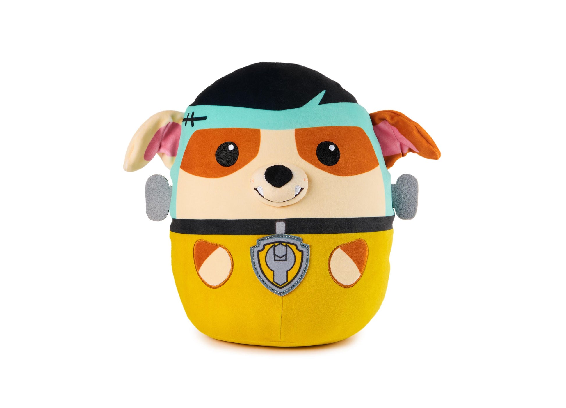 The Paw Patrol Franken Rubble Squish Plush features: