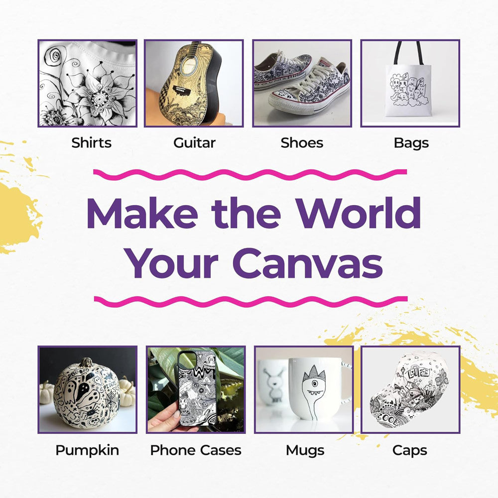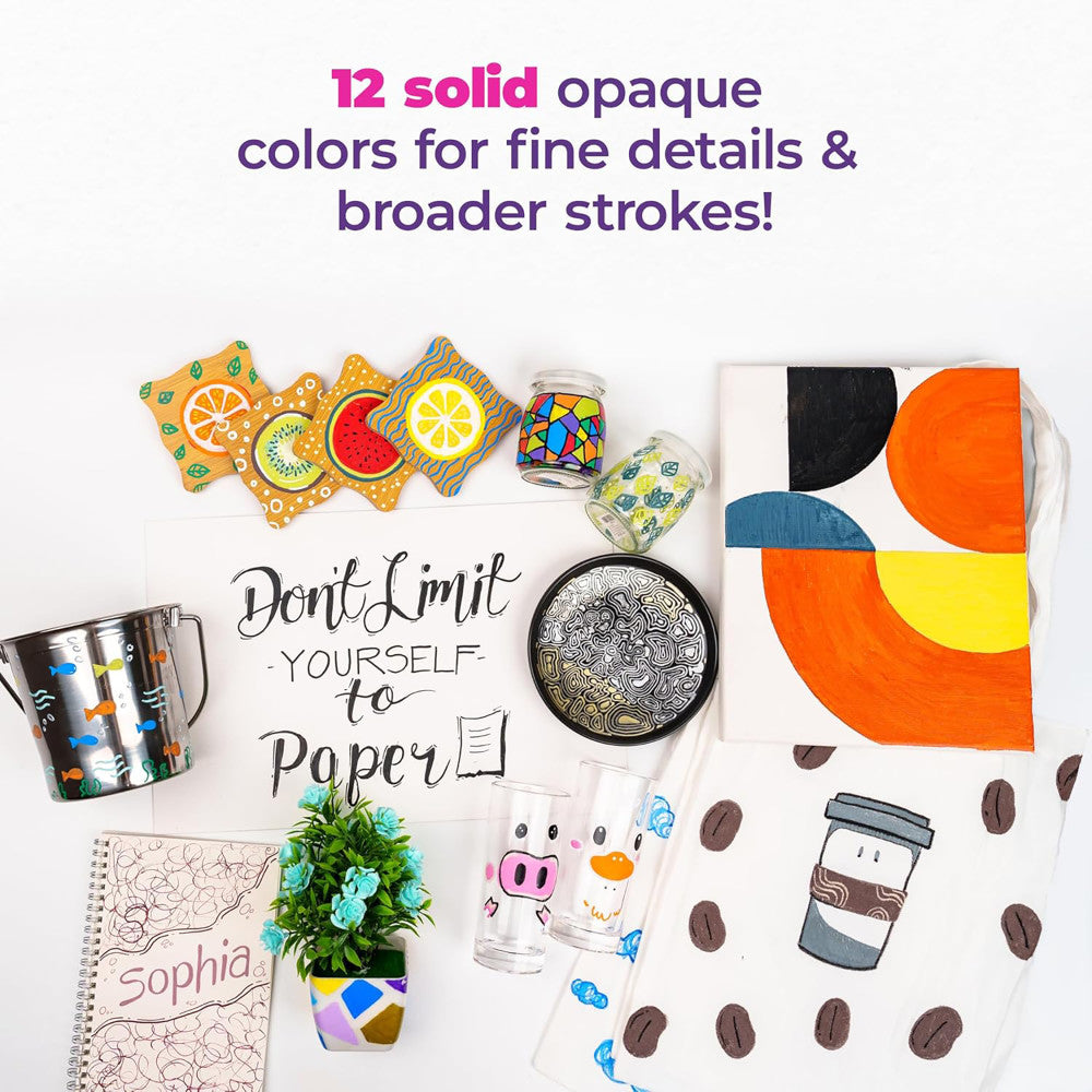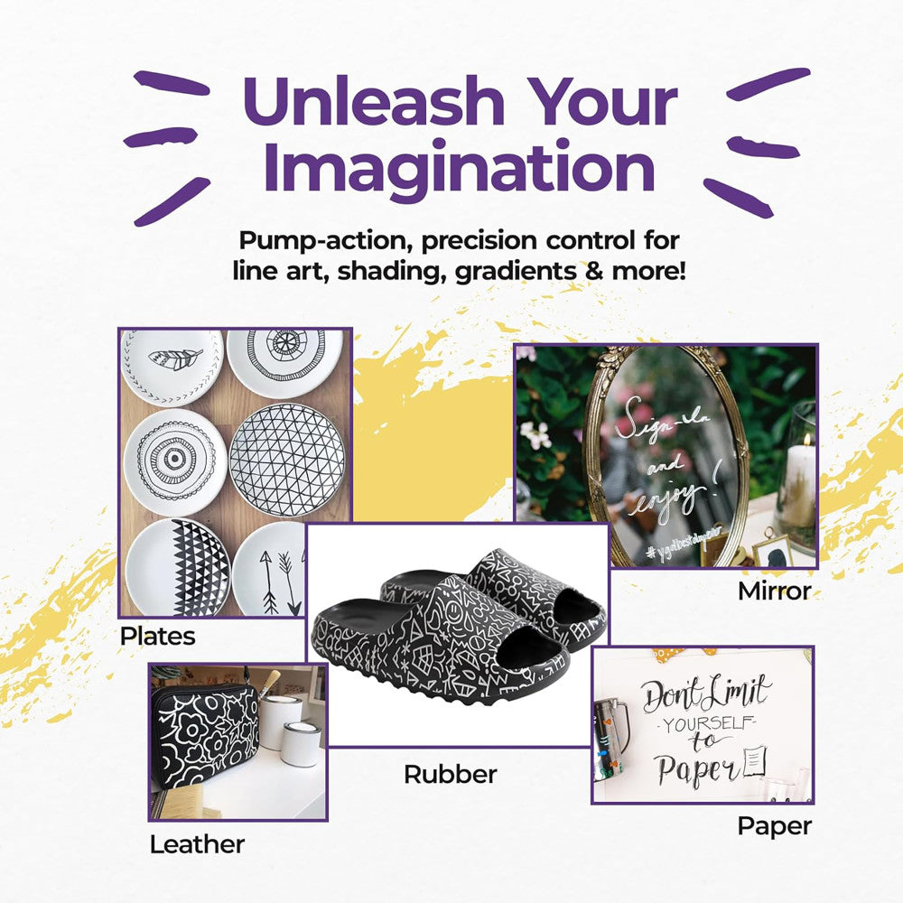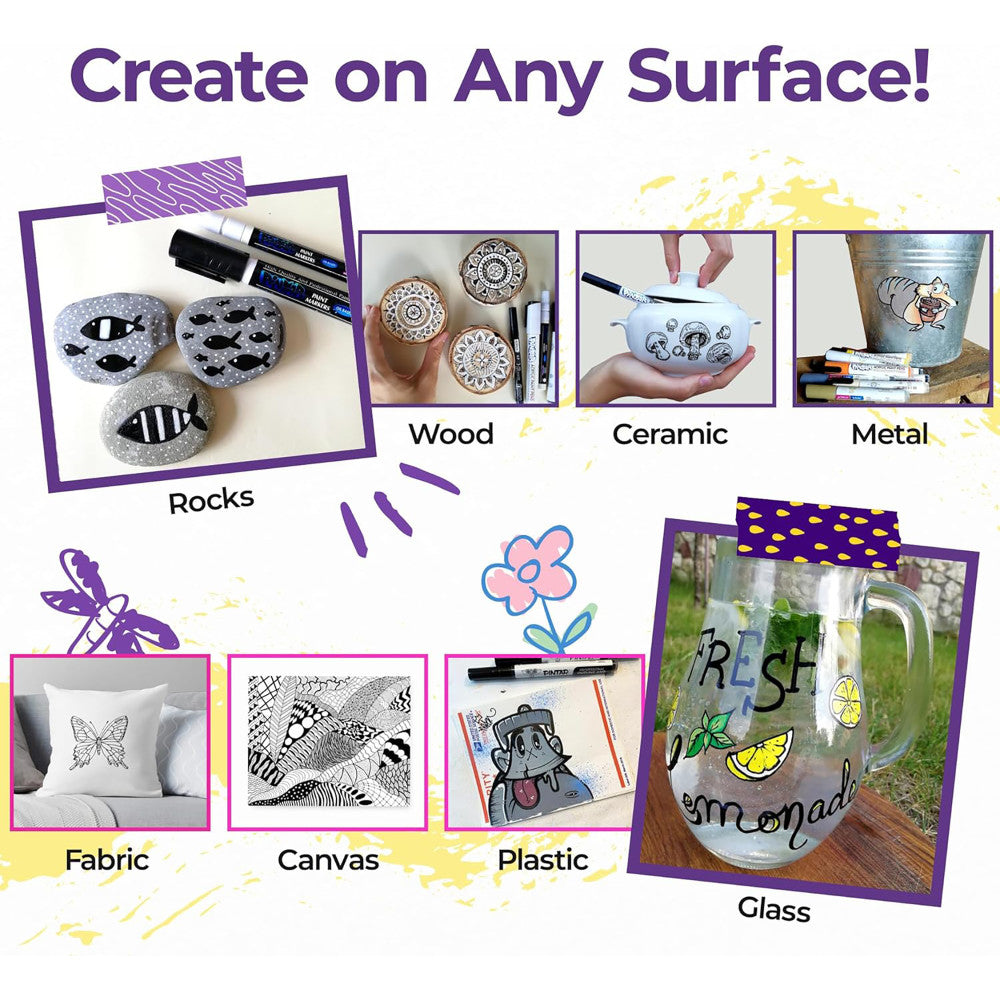 Craft your world in monochrome magic with the Pintar Acrylic Paint Markers: Black - 12 Pack, 0.7mm/ 1mm/ 5mm! Whether you're doodling on glass, jazzing up your sneakers, or designing personalized gifts, these markers bring your imagination to the surface.