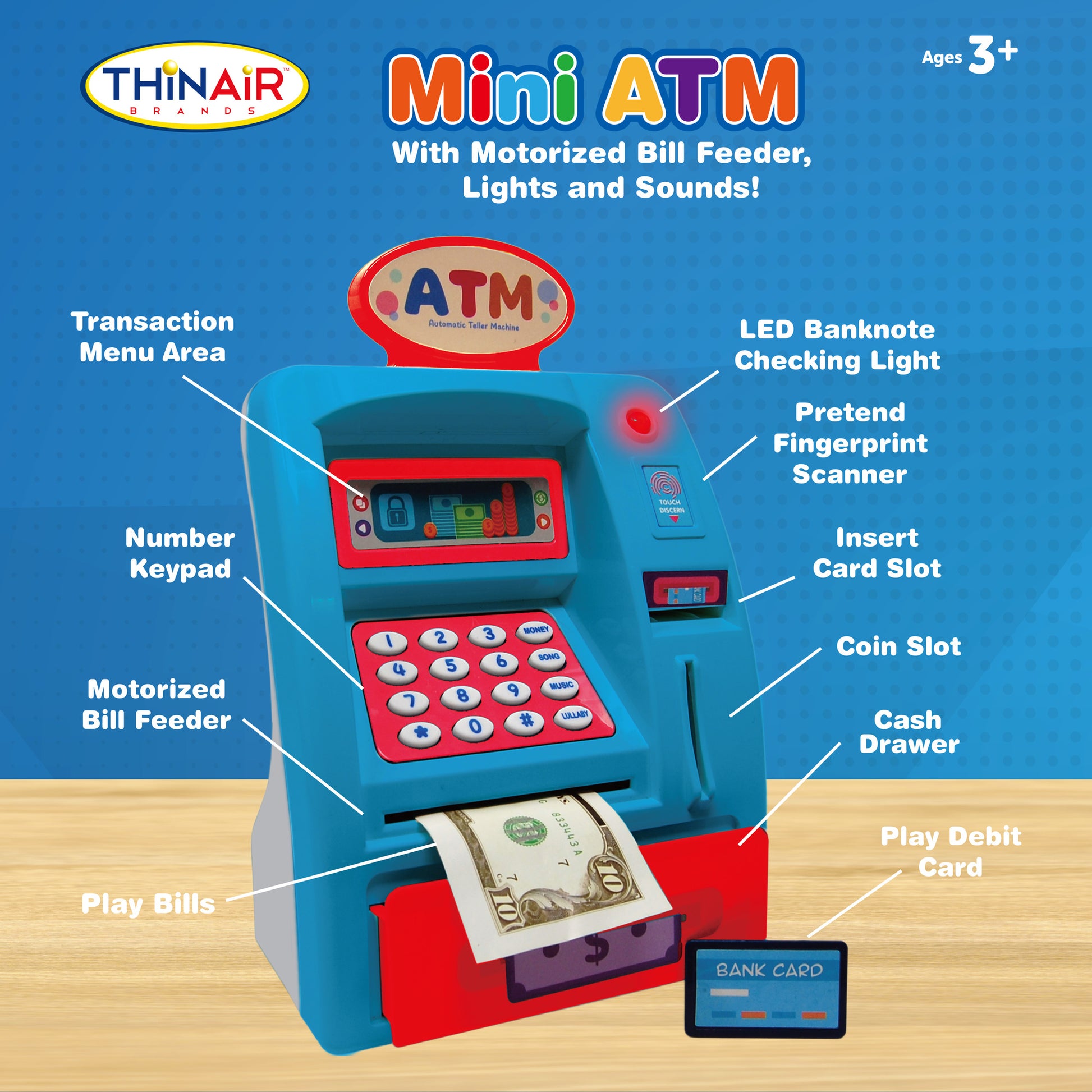 Ignite the excitement with the Playful Minds Mini ATM Piggy Bank! Interactive lights, sounds, fingerprint scanner & more bring saving to life. Includes play money, debit card & coin slot for realistic fun. Watch kids learn & laugh as they save! Shop now on toysrus.com.