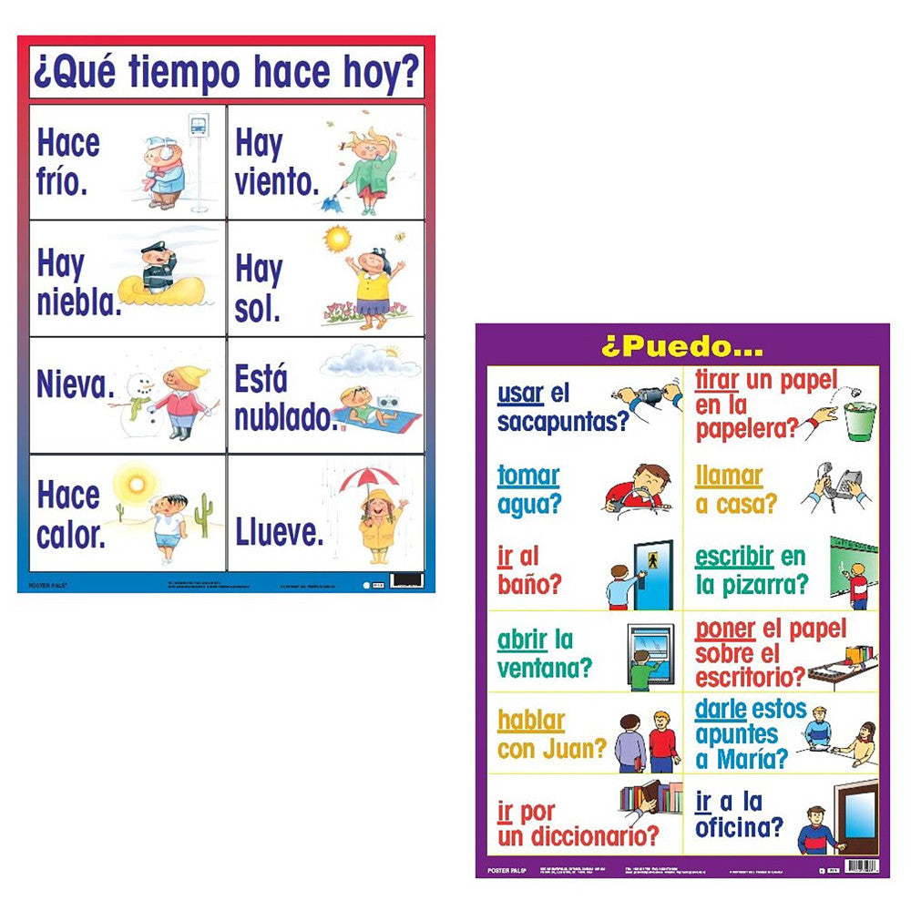 Splash your world with color and creativity with the Poster Pals Spanish Language Educational Posters! This vibrant set of seven large posters, each measuring 18" x 24", is designed to engage and educate. Featuring essential topics like weather, useful phrases, classroom objects, permissions, time-telling, numbers, and family tree, these posters are perfect for any Spanish language curriculum. Made from durable, eco-friendly materials, they are ideal for classroom use, homeschool settings, or any educational space aiming to foster language skills effectively and colorfully.