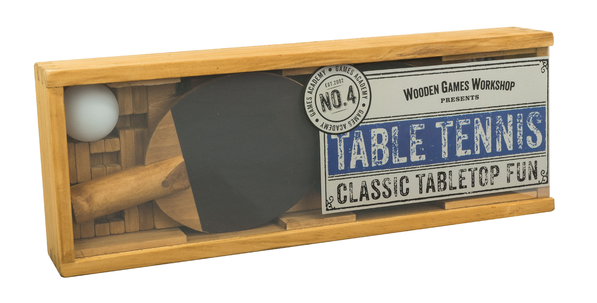 Serve up some fast-paced action with the Professor Puzzle Table Tennis set, where you can transform any table into a ping pong paradise! Handcrafted for the ultimate in quality, this wooden set promises hours of competitive fun, no matter where you are.