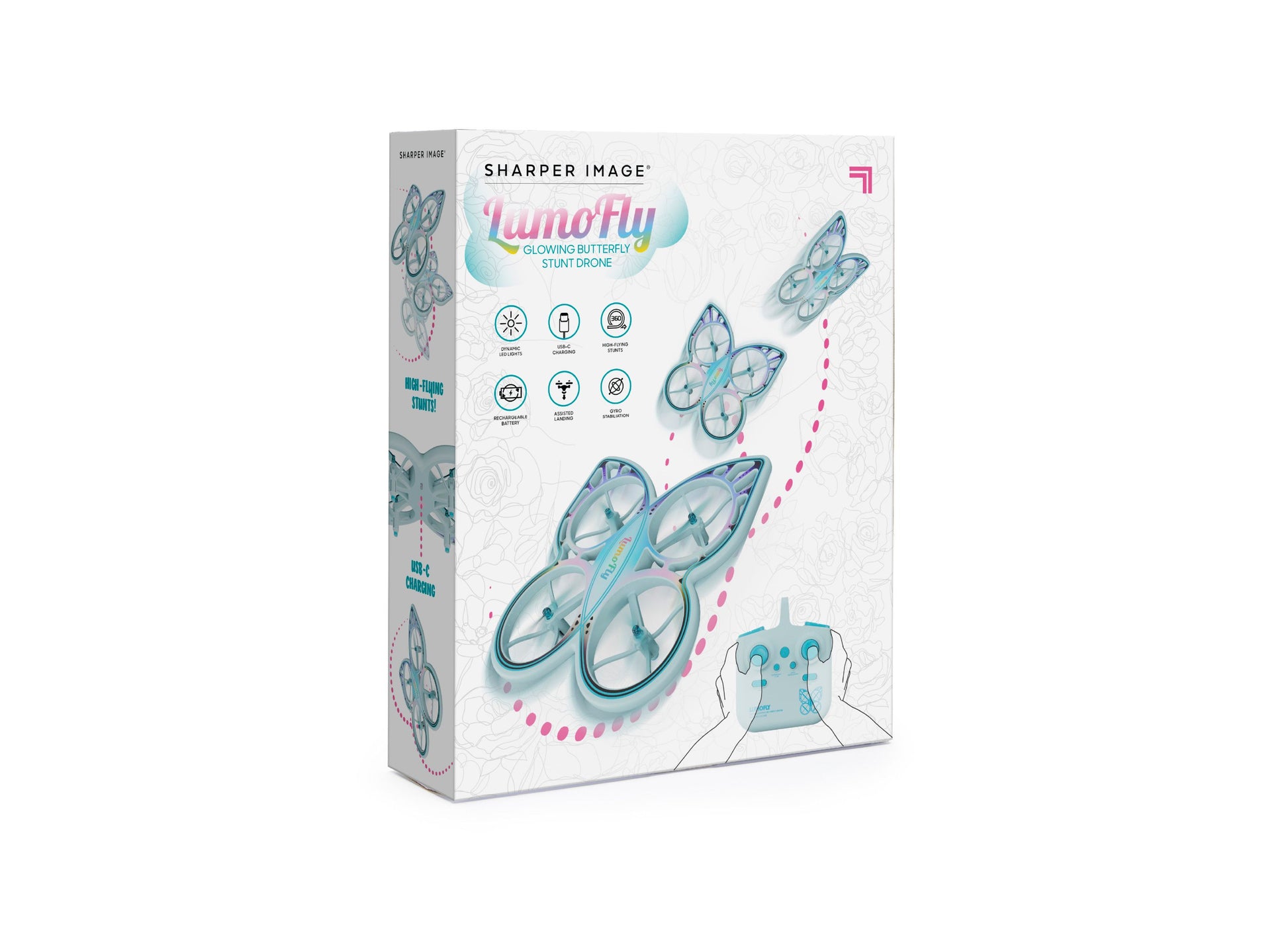 Light up the night with the Sharper Image Lumofly Butterfly Drone! Watch LED wings create dazzling aerial light shows while performing one-touch flips & stunts. Easy assisted takeoff/landing makes flying fun for beginners & pros. USB-C rechargeable remote control butterfly drone with auto-orientation for perfect control. Shop now on toysrus.com for this glowing stunt drone that transforms any space into a spectacular light display!