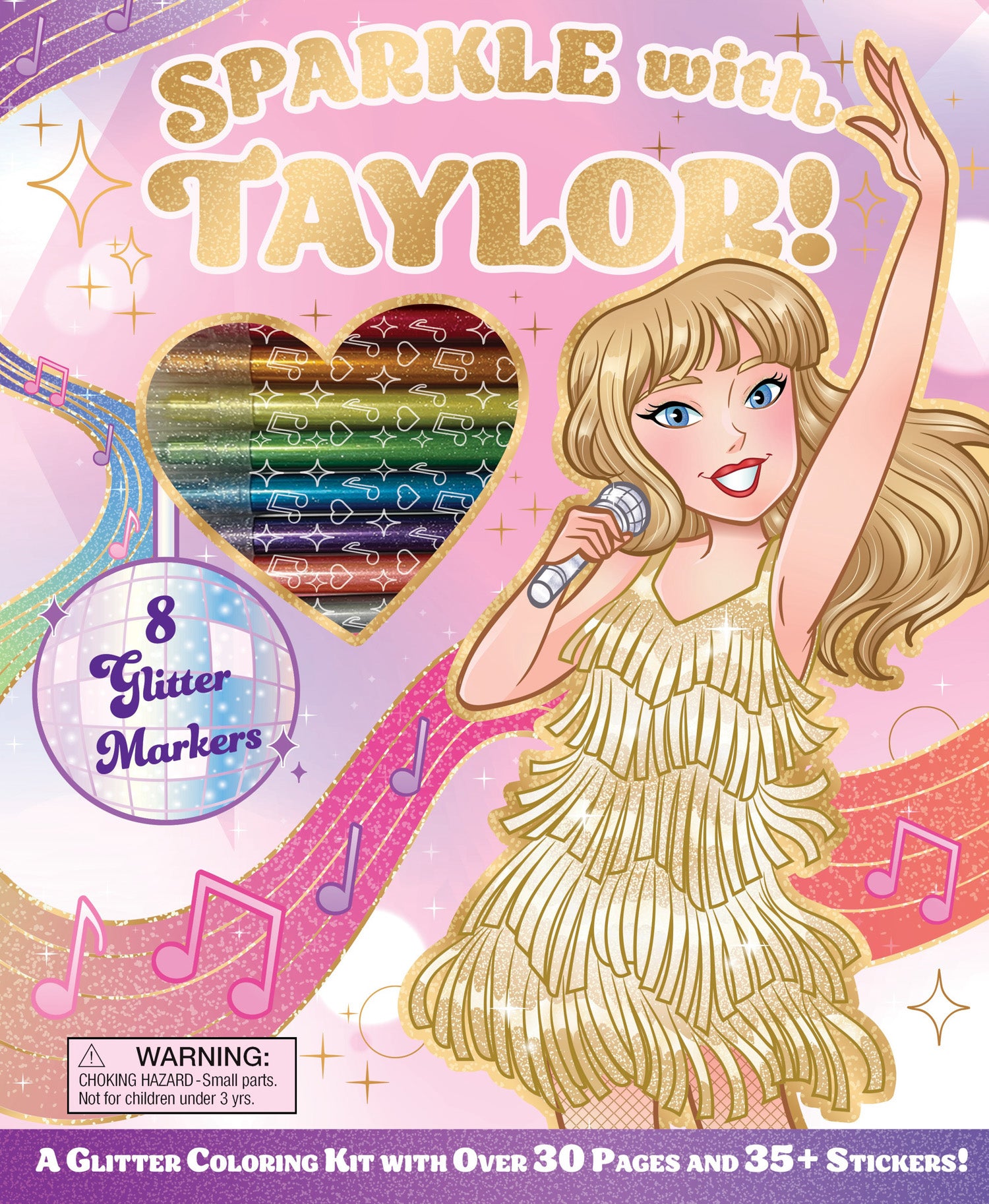 Color your world with the SPARKLE WITH TAYLOR! A GLITTER COLORING KIT and bring Taylor Swift's electrifying sparkle to your creative moments. Packed with 8 glitter markers and adorned with over 30 vibrant Taylor Swift stickers, this kit immerses fans in the life of pop's brightest star. Capture Taylor's world tour excitement, songwriting sessions, and fun-filled friends gatherings. Perfect for anyone ready to shine in their glitter era alongside Taylor Swift!