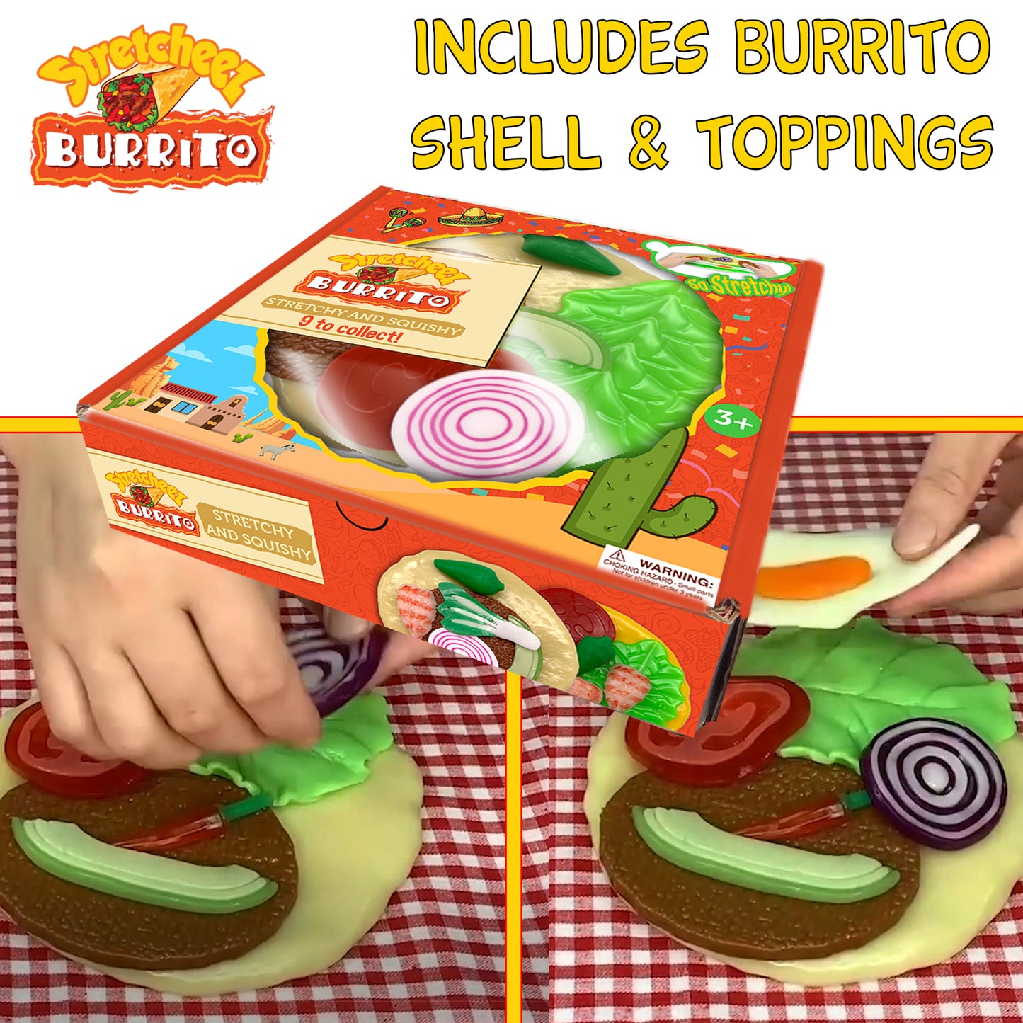 Stretch, squish, and create tasty fun with the Stretcheez Burrito toy food set! Mix and match surprise toppings for endless culinary adventures. Boosts creativity and fine motor skills through realistic, vibrant play. Collect all 12 food-themed sets for a pretend-play feast! Shop now on toysrus.com.