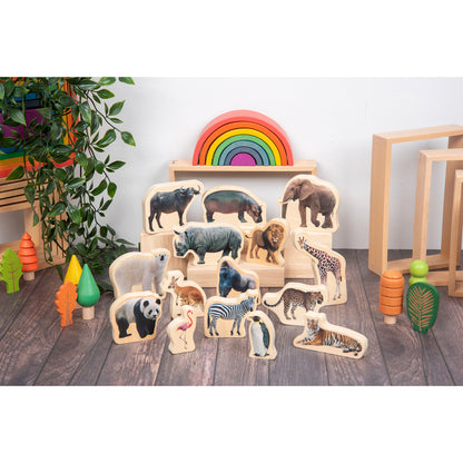 The TickiT Wooden Wild Animal Blocks - Set of 15 features: