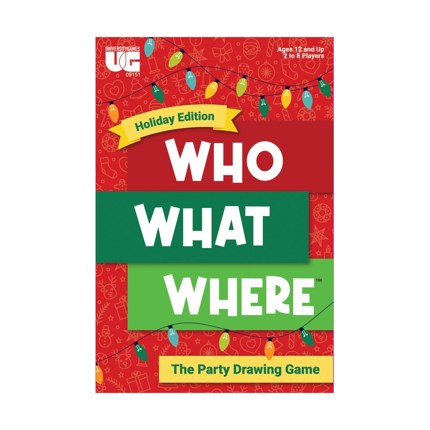 The Who What Where Holiday Edition Party Drawing Game features: