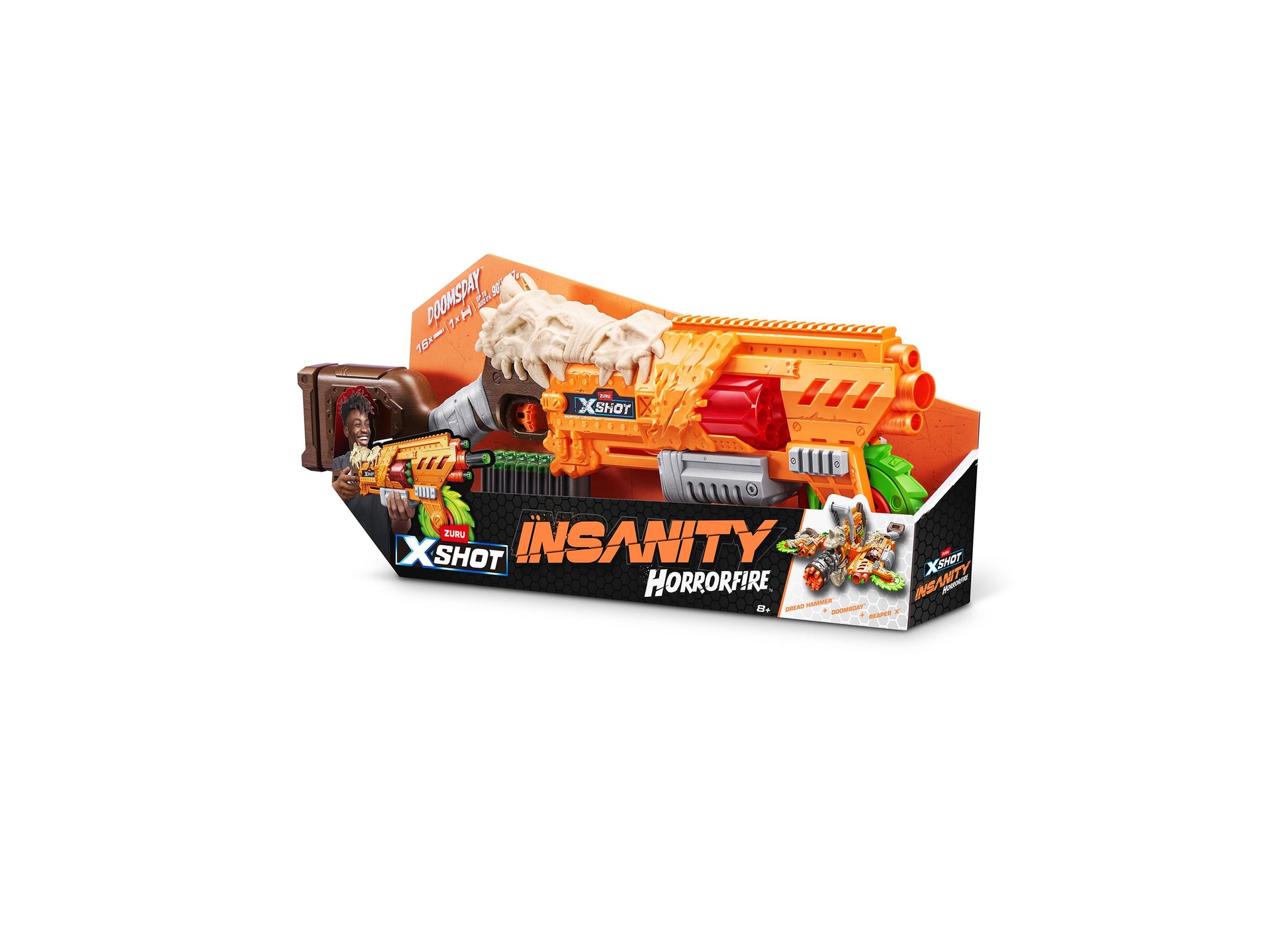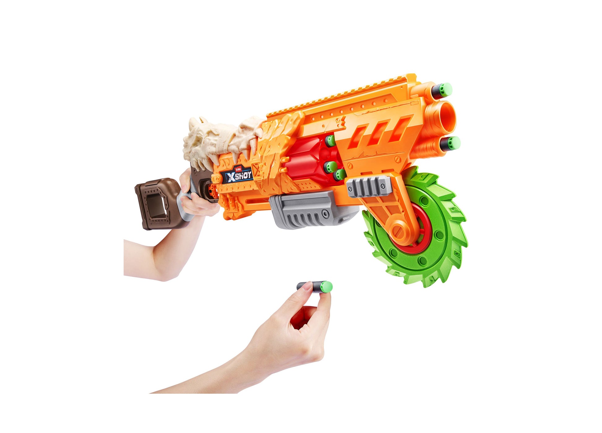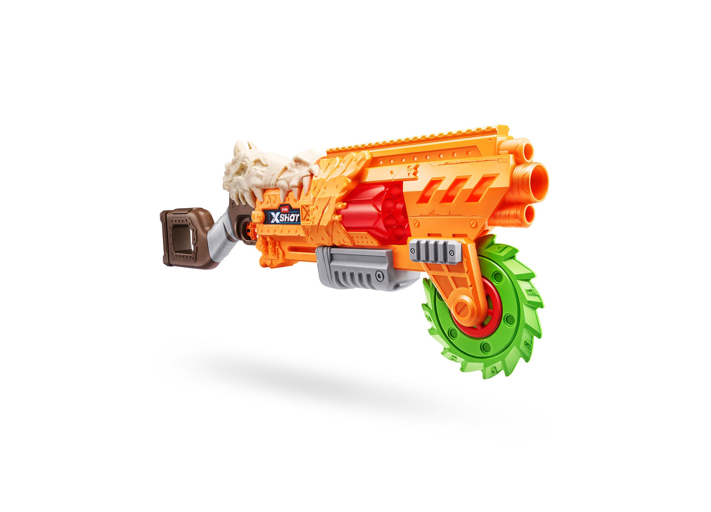 Gear up for epic battles with the X-Shot Insanity Horrorfire Chainsaw! This doomsday-ready blaster brings chaotic fun with a horrifying twist. Get ready to marvel as the chainsaw's spinning saw blade comes to life with every pump-action reload. Perfect for rapid-fire scenarios, it features an 8-dart capacity revolving drum that keeps you blasting without pause. Plus, it's armed with 16 Air Pocket Technology darts that promise further, faster, and deadlier shots for supreme dominance in your backyard apocalypse!