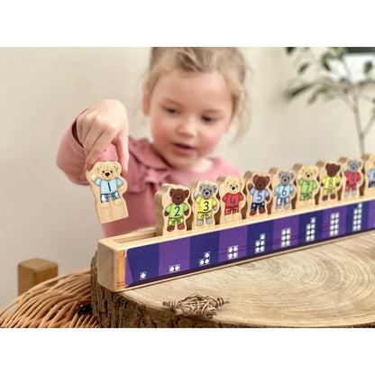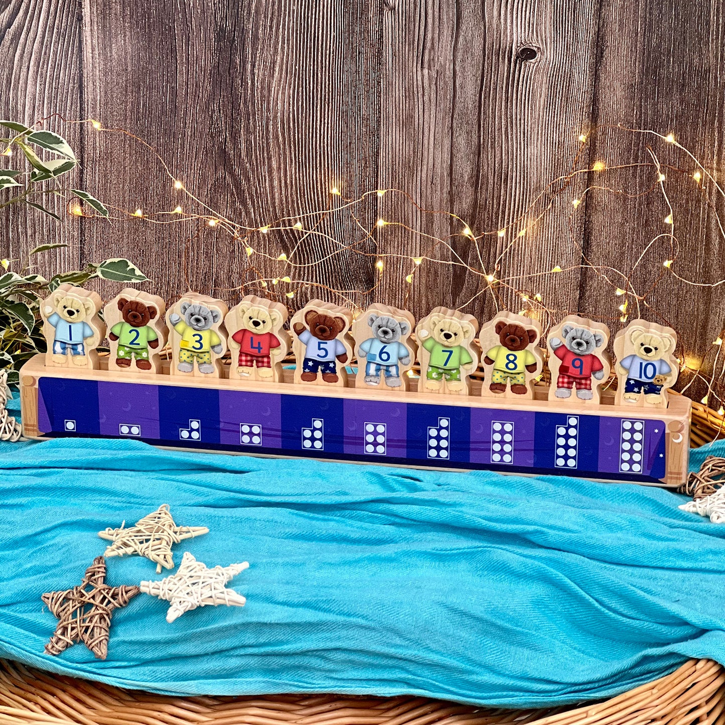 Discover the joy of early math with the Yellow Door Ten in the Bed Number Line Activity Set! This delightful wooden toy brings the beloved rhyme to life, encouraging counting, number sequencing, and spatial skills through play. Ten adorable bears and a sturdy bed base make learning engaging and fun for toddlers 18 months and up. Shop now on toysrus.com and snuggle up with hands-on education!
